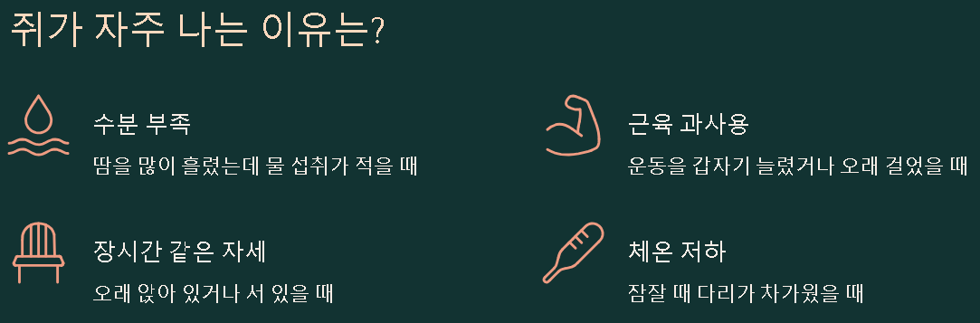 쥐가 자주 나는 원인: 수분·전해질·과사용·자세를 점검하기