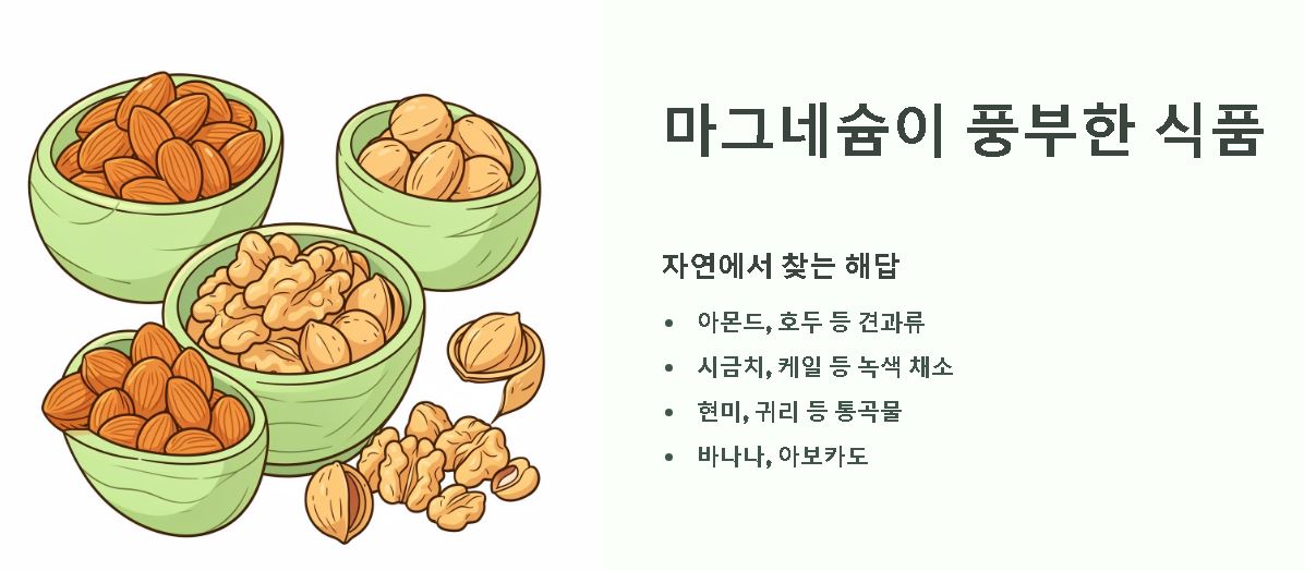 ※ 이 포스팅은 대중적인 건강 정보를 공유하기 위해 작성되었습니다. 마그네슘 섭취는 신장 질환자나 특정 약물 복용자에게는 주의가 필요할 수 있으므로, 증상이 심하거나 기저 질환이 있는 경우 반드시 전문의와 상담하여 정확한 원인을 파악하고 적정 섭취량을 결정하시기 바랍니다.