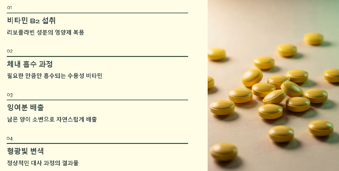 - ✅ 특정 영양제 섭취 후에 평소보다 밝은 형광 노란색 소변이 관찰되는 흐름을 경험하셨나요?