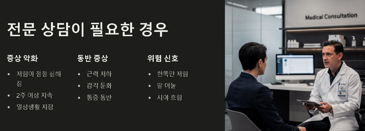 일상적 원인보다는 신경·대사 이상 가능성이 높아 정확한 진단이 요구됩니다.