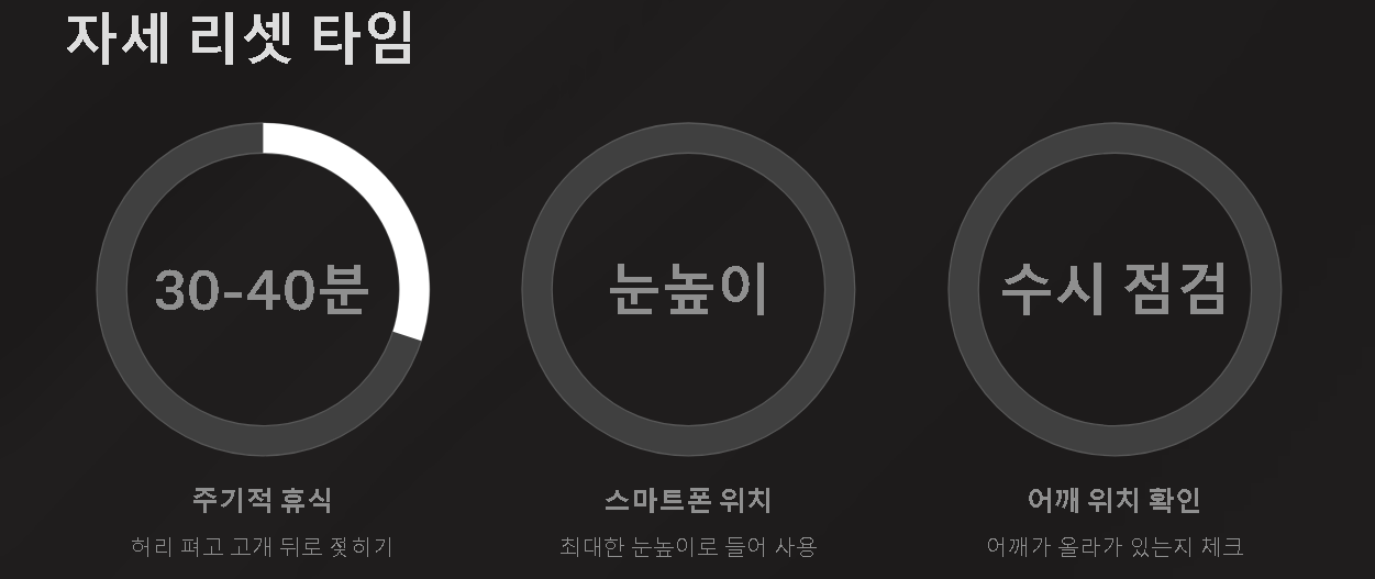 8초 스트레칭만으로도 즉각적인 완화 효과를 느낄 수 있지만, 평소 자세와 습관을 바꾸지 않으면 통증은 다시 되돌아오기 쉽습니다. 책상에 앉아 있을 때는 30~40분마다 한 번씩 허리를 펴고 고개를 뒤로 젖혀주는 자세 리셋 타임을 가져보세요. 스마트폰은 최대한 눈높이로 들어 사용하고, 화면을 보며 어깨가 올라가 있는지 틈틈이 점검하는 것도 좋습니다.