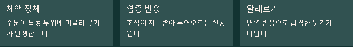 감기 이후 코막힘이 심해졌거나 얼굴 압통이 있다면 부비동(축농증) 관련 문제를 의심해 볼 수 있고, 치통·잇몸 통증·씹을 때 불편함이 있으면 치아·잇몸 염증과 연결되는 경우도 있을 수 있습니다. 여드름이나 피부 감염처럼 피부 자체의 염증이 국소 붓기로 이어지는 경우도 있습니다.