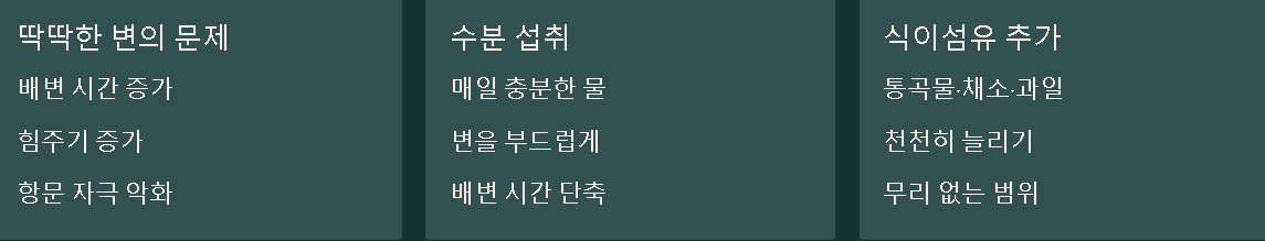 2) 변이 딱딱해지지 않게 수분·식이섬유 챙기기